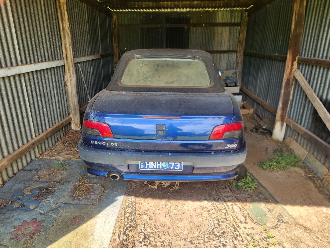 2000 Peugeot 306 Cabriolet. Series 3 auto. Probably 2000. Body straight and fair. Interior not good. Been sitting in a shed for the last 2- 3 years and not driven. Private plates not provided.