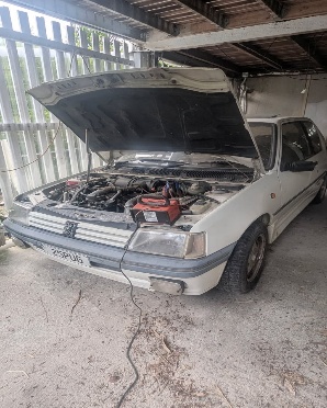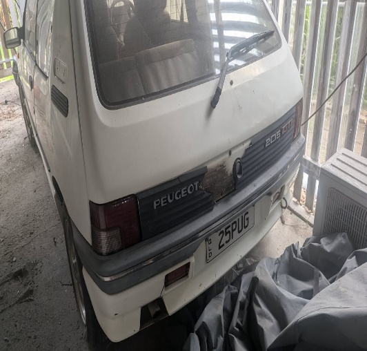 Peugeot 205 Si 1993 5 speed manual. 1.6 litre, 210,000 km. White, with special “factory alloys”. Owner since 1998, stored in garage for last few years. Complete vehicle, needs recommissioning, good base to start. No Rego or RWC. Has personalised plates “25 Pug”.
